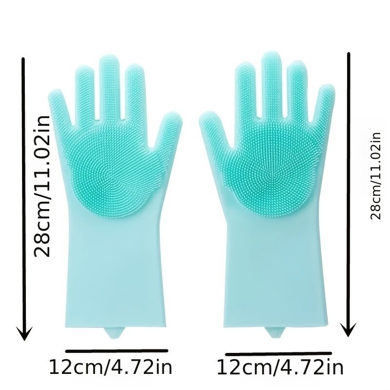 1pair Kitchen Silicone Dishwashing Gloves; Housework Cleaning Waterproof Insulation Magic Gloves; Dishwashing Brush